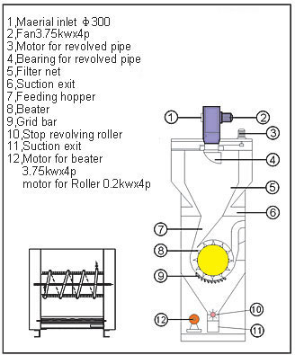 The chose procedure results in careful yet efficient cleaning.A cylinder equipped with special beater leads the material several times over a separating surface consisting of triangular mote knife. This process is entirely mechanical and independent of the transport air. Important characteristics of the raw material,such as fibre length,elongation and strength are maintained.