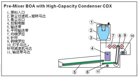 ■ 适用于小批量,并可节省占地面积为一相当经济性的喂棉设备。本机当搭配A3000作为预混机使用,可依照场地及用途,配备不同长度输出带。 工作宽度由1000-1500mm,依照产量有多种选择,BO系列产品均可连结开棉机或清棉机使用。纺纱过程中所产生的回条, 回线可本机设定一比例,用于生产线中。